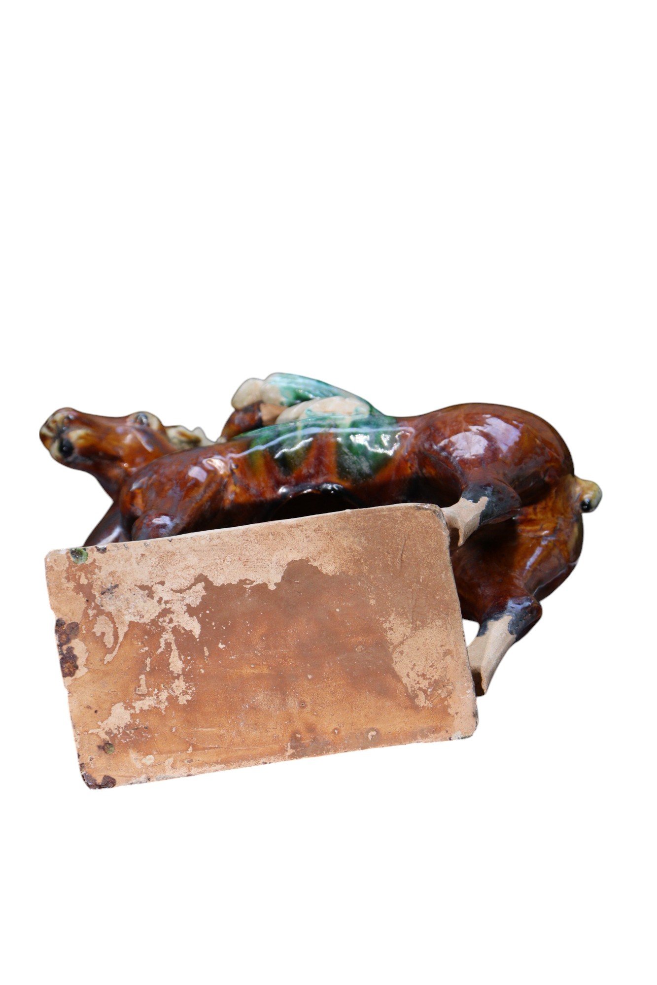 A GLAZED POTTERY FIGURE OF A PRANCING HORSE