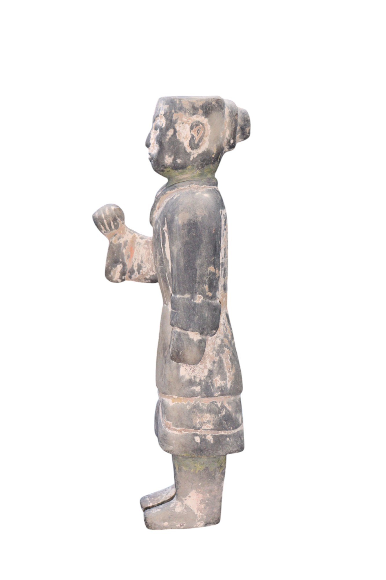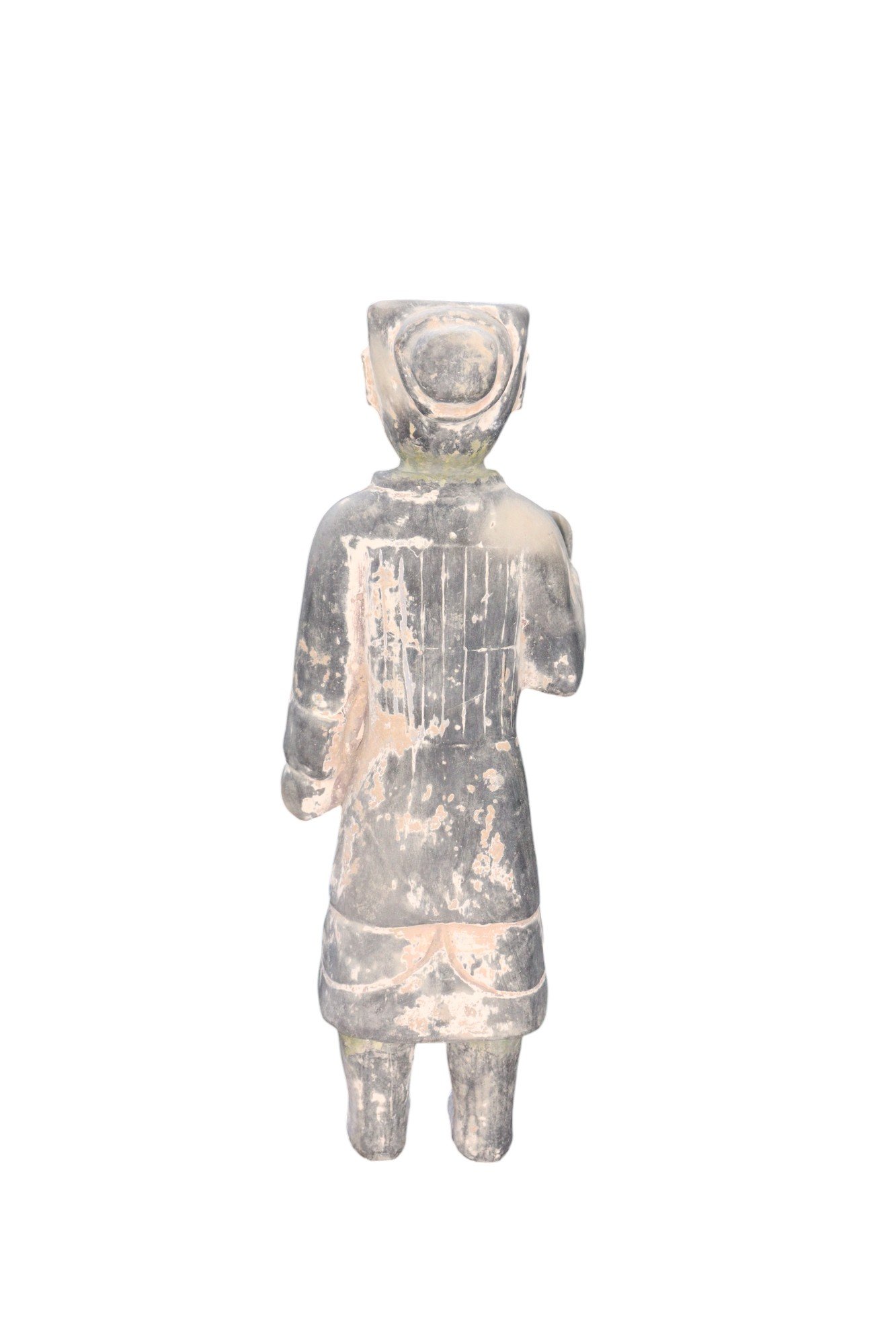 A soldier or guardian figure intended for a tomb, dressed in traditional tunic, with molded details and facial features that convey a sense of strength and authority. The face bears a solemn expression, characteristic of Mingqi tomb figures, designed to accompany the deceased in their journey to the afterlife.