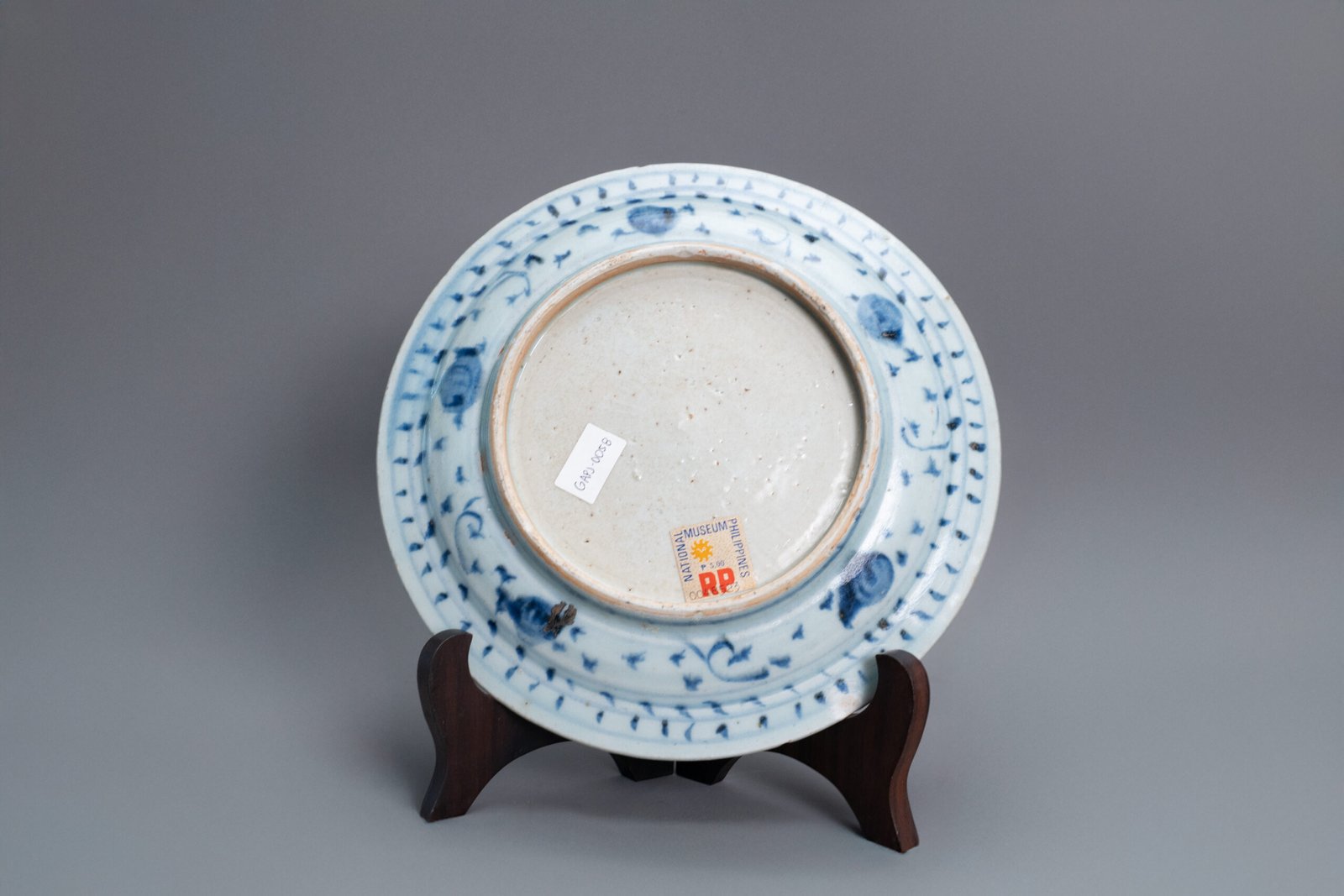 Vividly painted in underglaze blue with a qilin amidst foliage or auspicious emblems within a double-line border, the cavetto framed by a trellis diaper band. The base is recessed and unglazed, typical of Zhengtong provincial ware. The vibrant blue shading, iron spots, and kiln grit are hallmarks of the period’s early Ming provincial production.